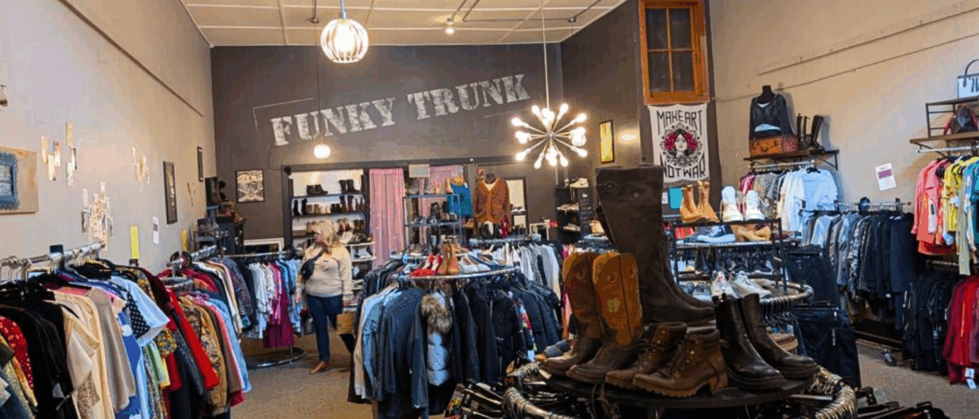 The Funky Trunk is a consignment store stocked with unique new & consigned clothing, accessories, shoes, art, and liberating FUN for men and women!