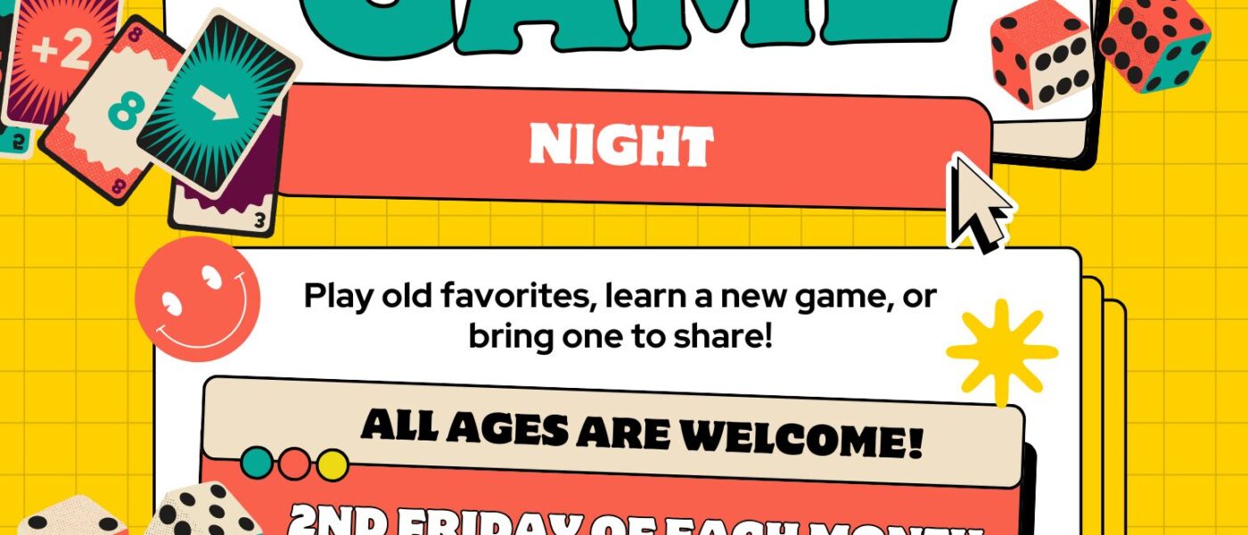 Come play board & card games with us at this family friendly community event. Open to the public. All ages welcome. No entrance fee.