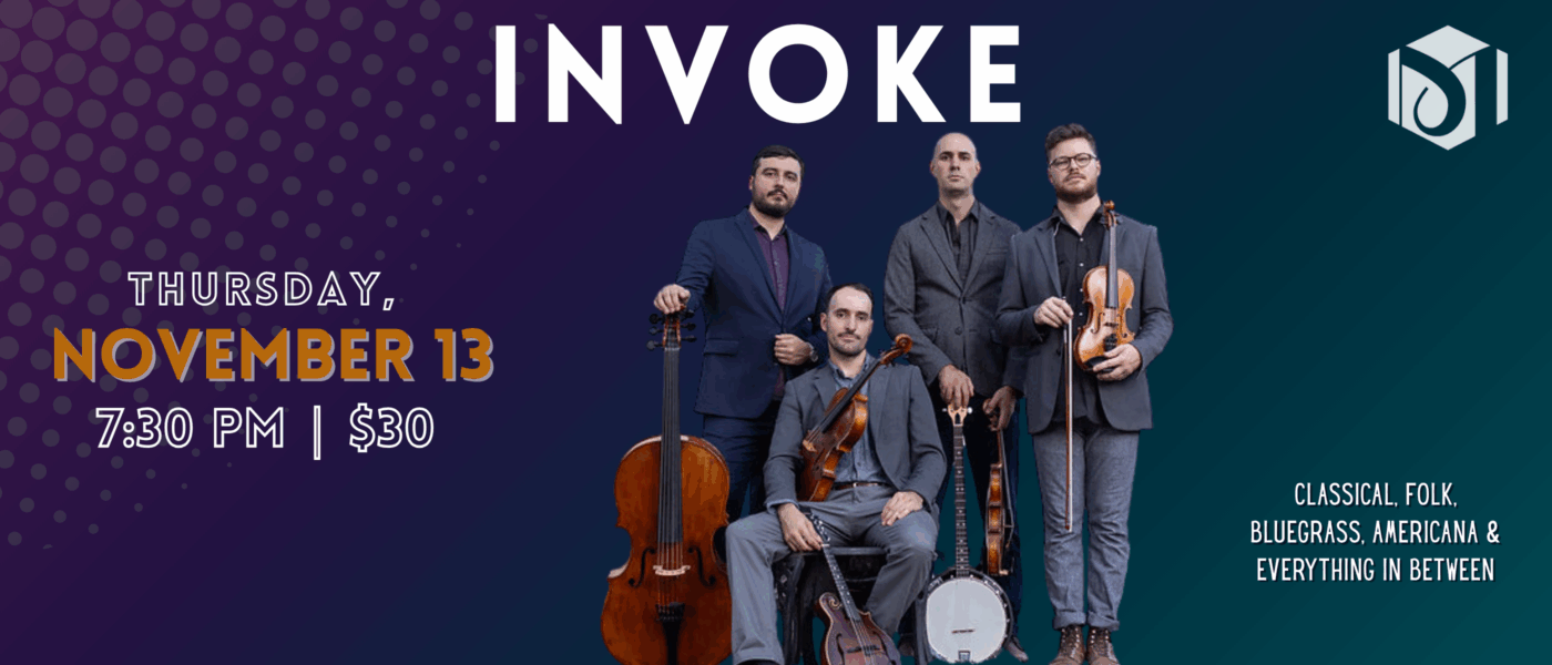 This multi-instrumental quartet encompasses traditions from across America, including bluegrass, Appalachian fiddle tunes, jazz, and minimalism. Fueled by their passion for storytelling, Invoke weaves all of these styles together to form a unique contemporary repertoire, featuring original works composed by and for the group.