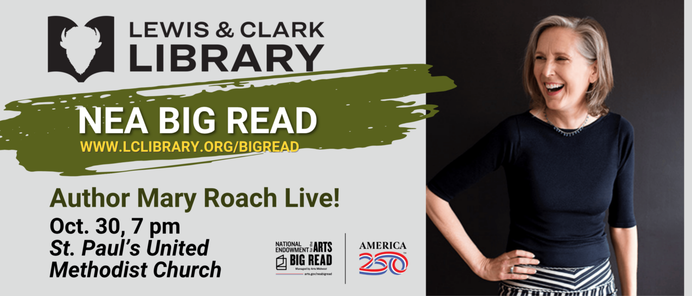 The Lewis & Clark Library is delighted to welcome New York Times bestselling author Mary Roach to Helena! This free event starts at 7 pm at St Paul’s United Methodist Church, 80 E Lawrence St. Helena. Montana Book Co will be selling books and an author signing opportunity will be available after the event.