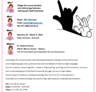Help bridge the communication and cultural gap between Hearing and Deaf Americans! Learn beginning signs, basic grammar and common phrases of American Sign Language. You will study the manual alphabet, […]