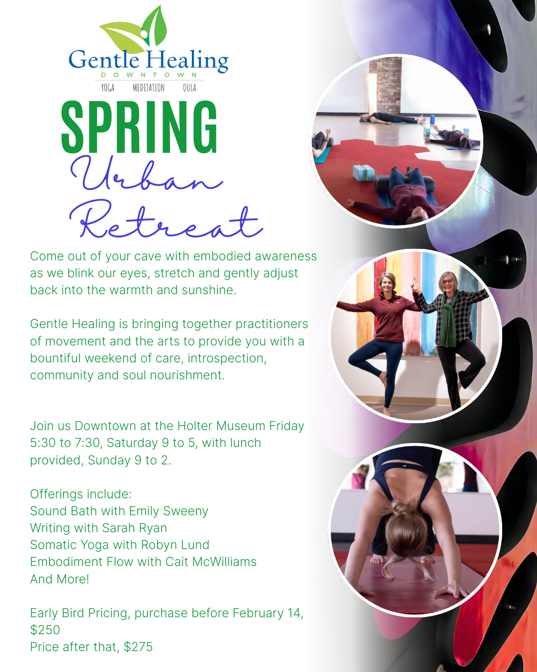 Come out of your cave with embodied awareness as we blink our eyes, stretch and gently adjust back into the warmth and sunshine. Gentle Healing is bringing together practitioners of movement and the arts to provide you with a bountiful weekend of care, introspection, community and soul nourishment. Join us the evening of Friday, April […]